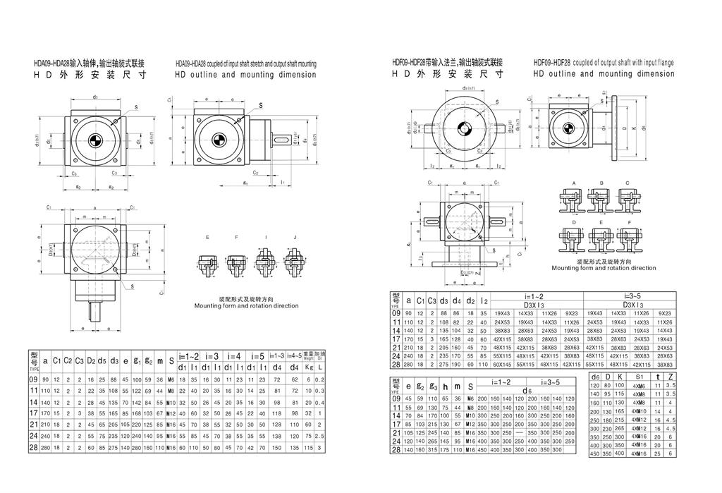 4、HD效率換向器共有七種規格,選型范圍大,輸出軸形式多樣,可滿足多種場合的需要。