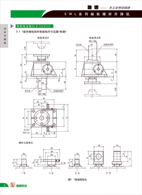 1型結構形式的絲桿頭部分為I型(圓柱型)、II型(法蘭型)、III型(螺紋型)型、IV(扁頭型)四種形式;