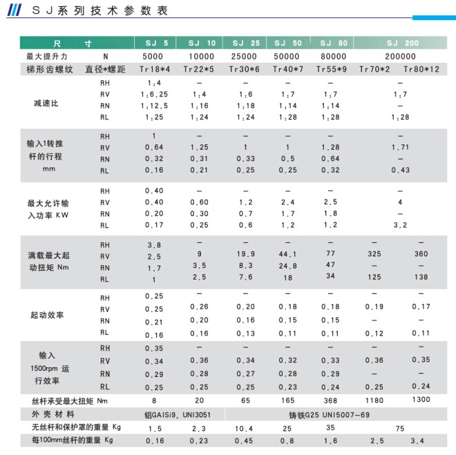 螺旋絲桿升降機(jī)選型參數(shù)表