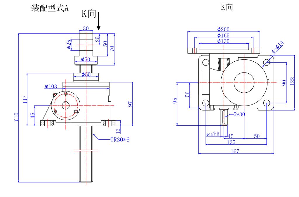 蝸輪絲桿升降機(jī)CAD外形圖SWL2.5M-1A-IV-400-F-魯?shù)聜鲃?dòng)